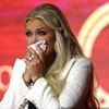 Erika Kirk, istri mendiang Charlie Kirk, menyeka air matanya dengan tisu saat menyampaikan pesan di upacara penghormatan terakhir Charlie di Stadion State Farm, Glendale, Negara Bagian Arizona, Amerika Serikat, Minggu (21/9/2025).Sebelum momen pelukan tersebut, Erika menyampaikan pidato penuh emosi. Ia mengenang Charlie yang ditembak mati pada 10 September saat berdebat di sebuah universitas di Utah.